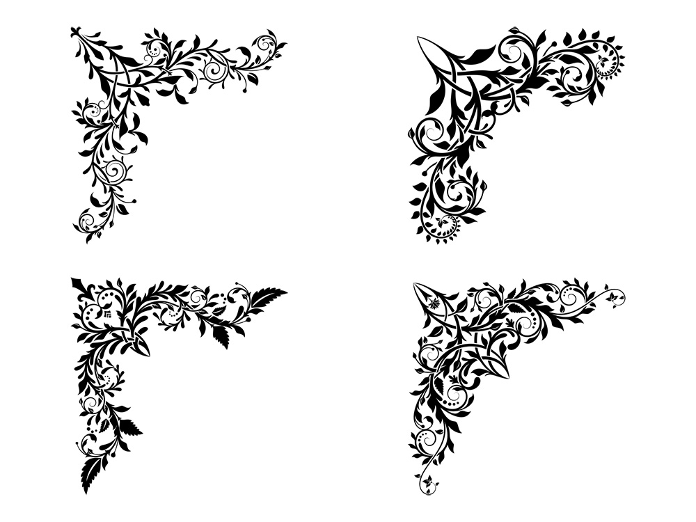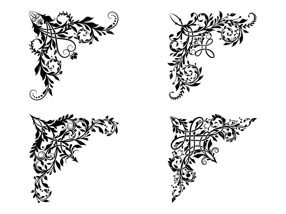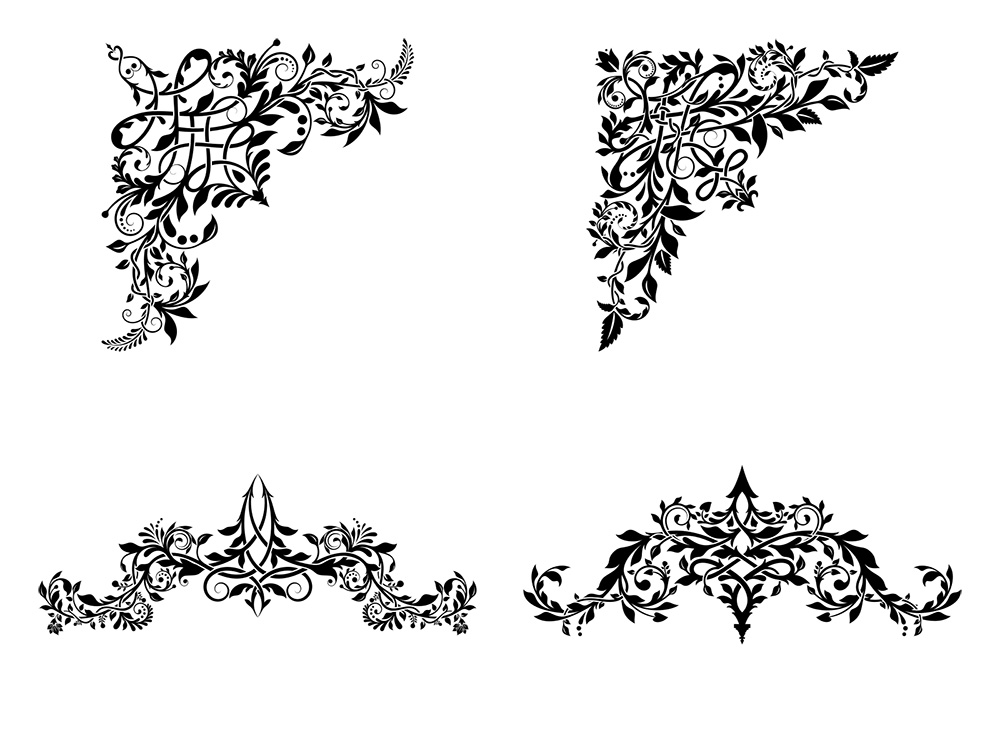 Inkscapeで作ってみたフローラルスワール系装飾50個の詰め合わせです。