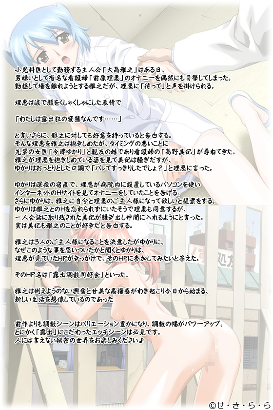 小児科医として勤務する主人公「大高雅之」はある日、男嫌いとして有名な看護婦「前原理恵」のオナニーを偶然にも目撃してしまった。