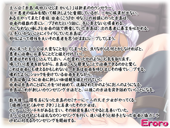 主人公は沙紀にも淫乱なカウンセリングを行い、追い返そうと助手となった由南と協力して沙紀に対するカウンセリングを開始する。