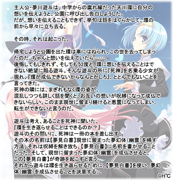 そんな遊斗の所に『死神』を名乗る少女が現れ、『環が成仏できないからなんとかしろ』、ととんでもないことを言ってきた。