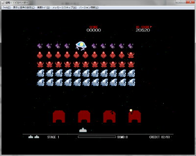 宇宙船が襲ってくる懐かしい某シューティングを再現。