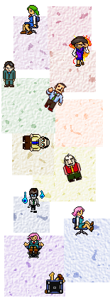こだわりのドット絵。お局さま、エロ部長、マッチョ係長など敵社員はどれも個性的!