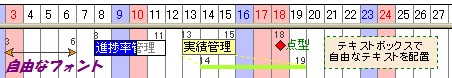 横軸の目盛は、日・週・旬・月・年から自由に選択でき、表示形式も多彩。表示縮尺(スケール)も自由に一発で変更できます。表示期間も限定されず、スクロールするだけで過去にも未来にも拡大されます。