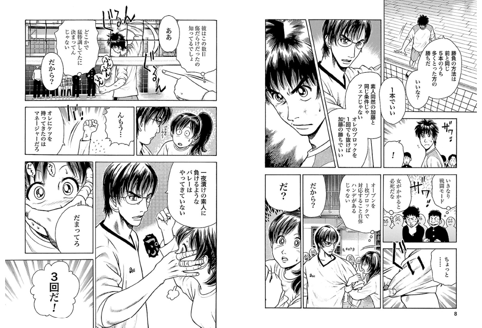 強豪校からのオファーを蹴り、掛川高に入った天才セッターの金子。彼と1対1の勝負で勝ったらつきあってあげると意中の舞子から言われた加藤だが、逆に負けたらバレー部に入ることを約束。 スーパーエースの素質を持つ男vs超高校級の天才、魂がぶつかり合う勝負の行方は!? バレーも恋も加速する熱き青春ストーリー!!