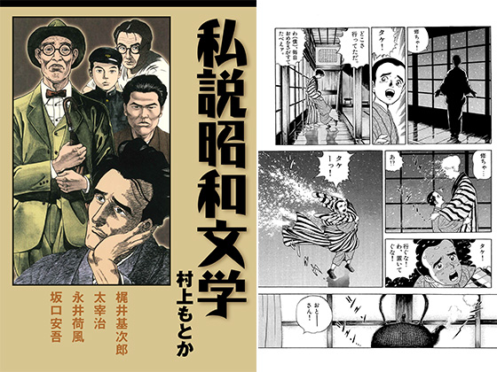 「……死のう」。太宰治と山崎富栄の入水自殺。その最期の夜の他、様々なエピソードを描く。人物や当時の町並等が極めて 精緻に描写された、映画を観ているような漫画世界。太宰治 他、永井荷風、梶井基次郎、坂口安吾の計4人の作家を描いた、 文学ファンに特にお薦めな作品。