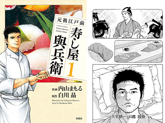 江戸前寿司の元祖「華屋與兵衛」の生まれ変わり、冴えない独身男・大宅耕一40歳が、現代の日本に殴りこみ!