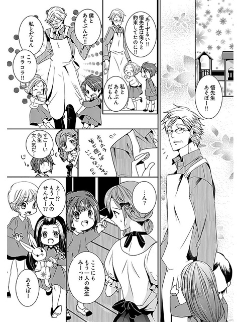 ちいさいころ人前に出るのが苦手で、パニックになってしまったひな。そんな時、さとる先生が優しく緊張をほぐしてくれた。そして15年後、さとる先生にあこがれて幼稚園の先生になったひな。しかも偶然、同じ組を担当する先生として出会ったのはさとる先生!!