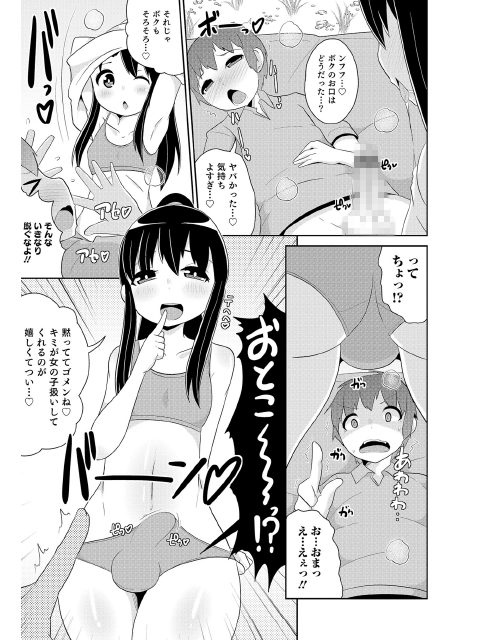 夏休みに帰省したど田舎でかわいい子と遭遇。その子に誘われるままに股間が反応してしまう。男の子だとわかってもそれは変わらず…むしろ興奮して…。このまましちゃおうか?セックスv ※ オトコのコHEAVEN Vol.35 夏の誘惑v援交×男の娘水着 収録作品