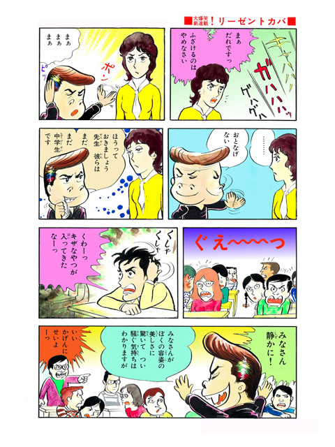 100年の伝統を誇る不滅のヘアスタイル・リーゼントでバッチリキメてやって来た転校生、河馬田洋! 転校初日から妄想炸裂! 自称「超一流の男」河馬田が巻き起こす、常識はずれのハチャメチャ・ナンセンスギャグ!