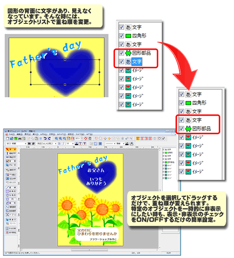 重ね順も簡単入れ替え「オブジェクトリスト」