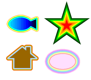 文字や図形に、色や太さの異なる複数のフチ取りをつけることができるマルチフチ取り機能。