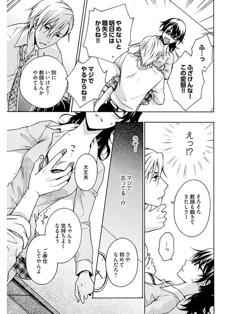 教師である嗣巳(つぐみ)と思わず目が合ってしまい、慌ててその場を逃げ出すが、後日嗣巳とばったり出会って「あの時、お前とヤッているようなつもりでイってみた」「すげーよかった」とのセクハラ発言の連発に呆れと怒りを覚えて立ち去ろうとするが、嗣巳は悪びれずにスマホを引きかえに、「さや」にカラダを要求。