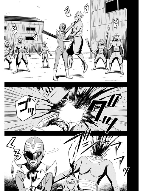 一緒に集められた美女たちが無惨に殺される絶望の中、桃美に秘められた戦隊ヒロインの力が覚醒する!
