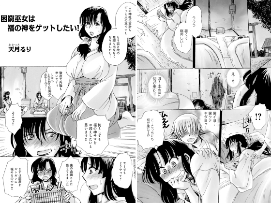 困窮する巫女たちが、福の神を召喚してエッチ三昧。首尾よく福の神をセックスでゲットしたのだが…。