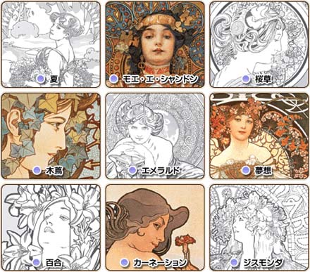 アール・ヌーヴォーの巨匠・ミュシャの代表作品を、あなたの色彩センスでカラーリング!