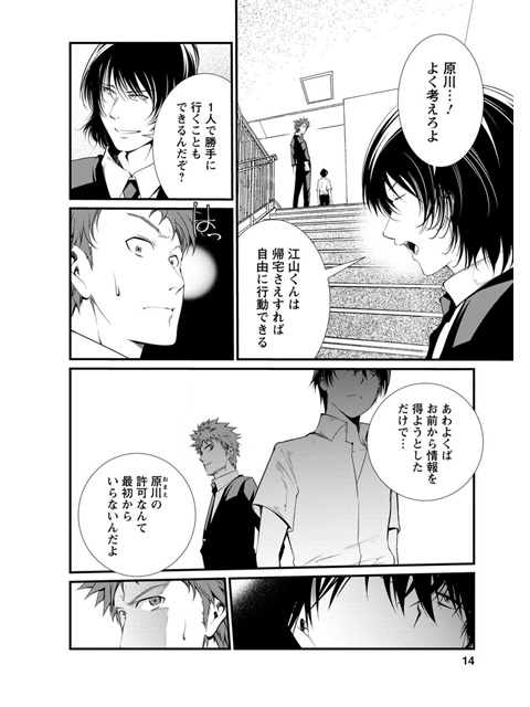 ○○ゲーム11日目。江山は事情聴取ゲームに勝った報酬で、勝又に娘を暴行した犯人の情報を手渡した。絶望していた勝又は、これによって希望を見出し倉梨とも和解するが、家に帰ろうとしたところで九字間の命令により殺されてしまう。勝又の死を知った江山は、2人にとっての復讐相手であり、理不尽の元凶を作った暴行犯たちを殺しに行きたいと申し出た――