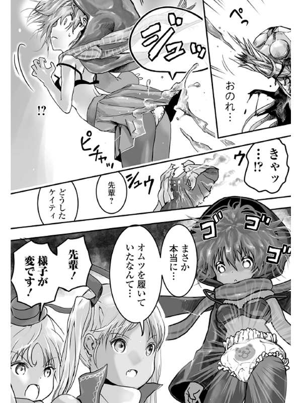 大ダメージを与えてしまう。狼狽する3人だが、その原因はケイティのオムツに憑依
