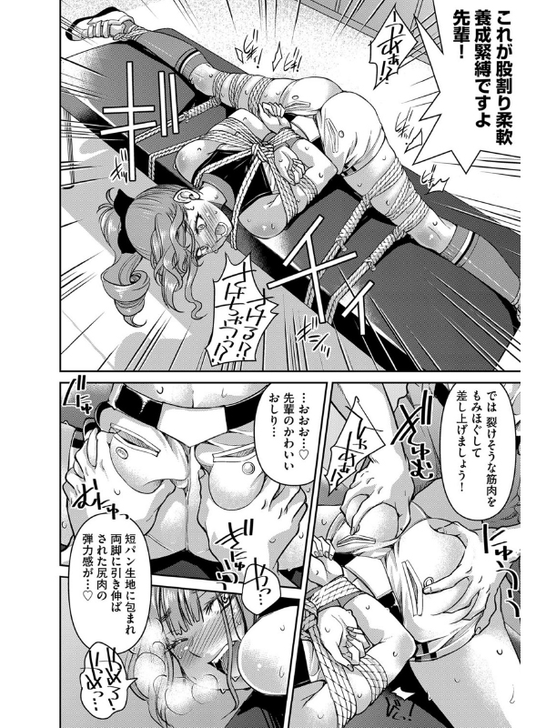 最初のうちは女子たちの様子にかわりは無いかのように思われたが、四条畷主任が急によろめき更衣室へ。その様子に気がついたハジメは縄を持って後を追うと…キワどいチアコスで悶々している主任が!