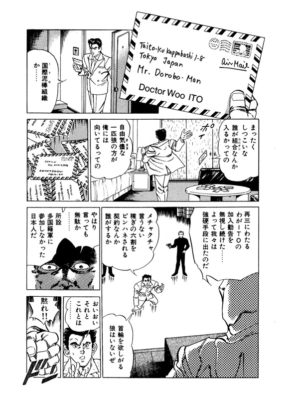 自由業・河童雷介にはドロボーマンという裏の顔があった! 今日も金貸しの大兼有作が陰茎に埋め込んである六個の真珠“処女の涙”を見事に奪い獲った。が、逃亡用に用意していたフェラーリが交通課の婦警に撤去される。 仕方なくミニパトを盗みだし、追ってきた婦警の美木本晴子ごと逃走。因縁が始まり、美木本は絶対にドロボーマンを逮捕すると執念を燃やし追いかける。 そこに大兼有作も復讐に来て…。 ちょっぴりエッチなドロボーマンの痛快怪盗スペクタル劇場!!
