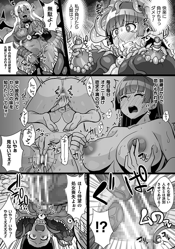 蠢く触手の虜になり堕ちる少女戦士たち!