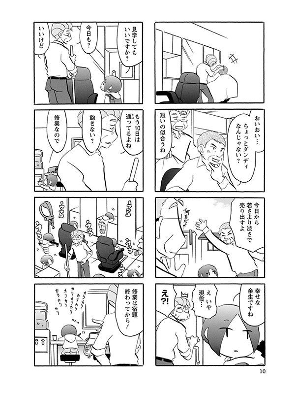 【らいか・デイズ】の作者が描く新たな傑作! 引退したい理容店店主・ビーさんと、店を継ぎたい少女・薫のお話。そこへ、ビーさんを好きな電器店の娘・芽衣子がやってきて…!? 枯れオジのビーさんと、少し変わった薫ちゃんのやり取りが微笑ましい…切なくも笑える感動4コマ!!