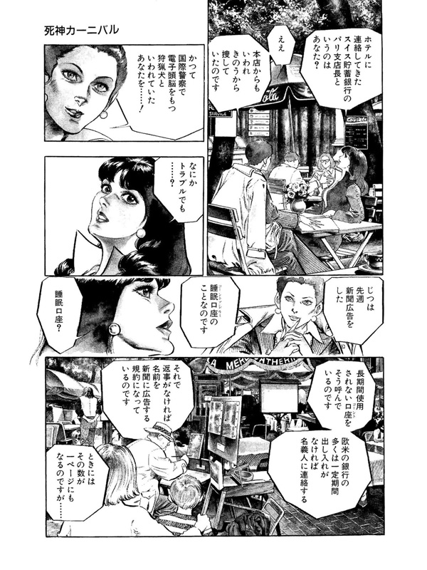 ある日美鬼の元へスイス銀行パリ支店長から連絡が。何でも一千万フラン以上が入っているにも関わらず長期間使用されていなかった睡眠口座に、突如自分こそが持ち主の相続人だという男が出現。