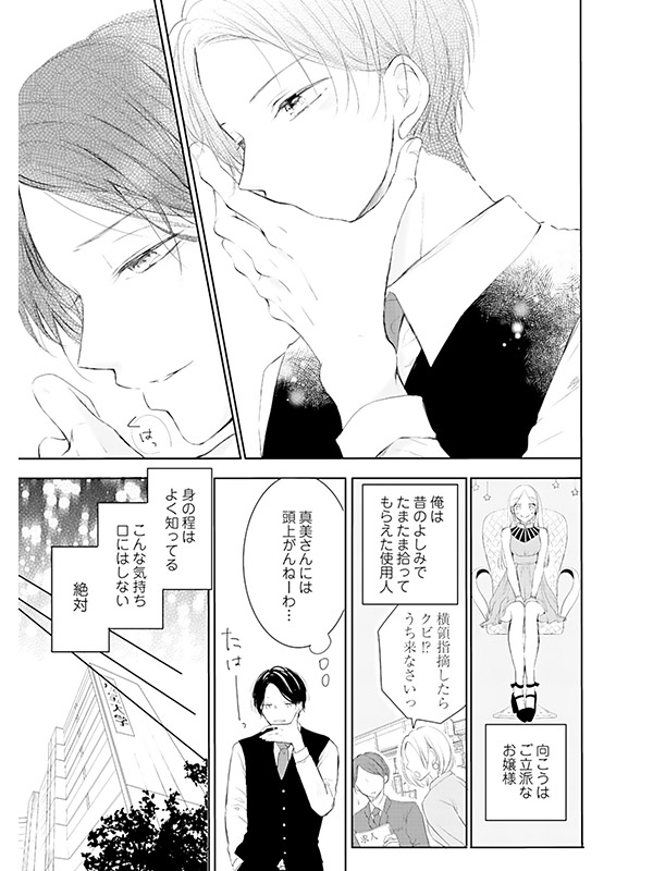 男嫌いの帆稀の新しい使用人は超絶失礼な腹黒男で悩みの種となっていた。そんなある日帆稀は大学の友達にダブルデートに誘われてしまい……