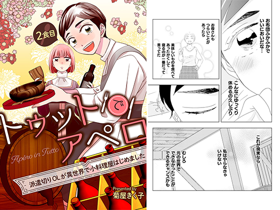 突如異世界にトリップしてしまったたまきは、リコッタの家でもある小料理屋トゥットにお世話になることに。トゥットの常連客に料理を披露することになり、異世界のゴミ捨て場、もといまだまだ食べられる食材が置いてある場所へと向かう。そこで見つけた今回の食材とは……?心もお腹もほっこり温かくする、ほのぼの×ごはんストーリー!