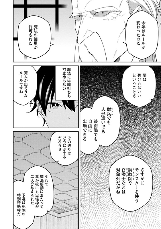魔族の襲撃から一年。無事に二年生となったセイカは、突如学園長から学園代表として武術大会に出場するように要請される。