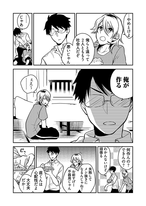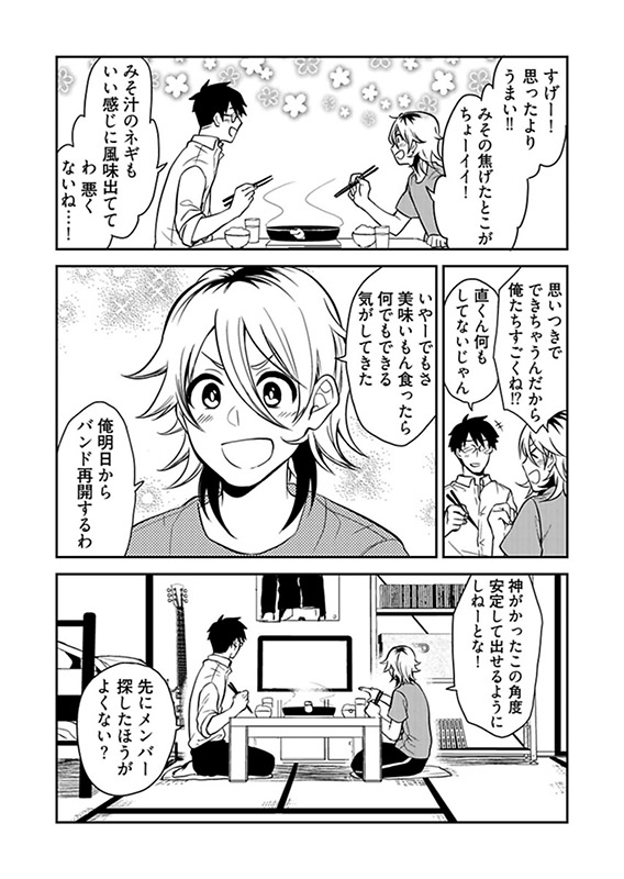 バンドは解散したが、夢をあきらめない直。 一緒にアパート暮らしをしている大柄の無気力男・三四郎とは日々をだらだらと過ごしているが、それでもお腹は空いてしまう… そんな時こそ、工夫のしどころだ!!