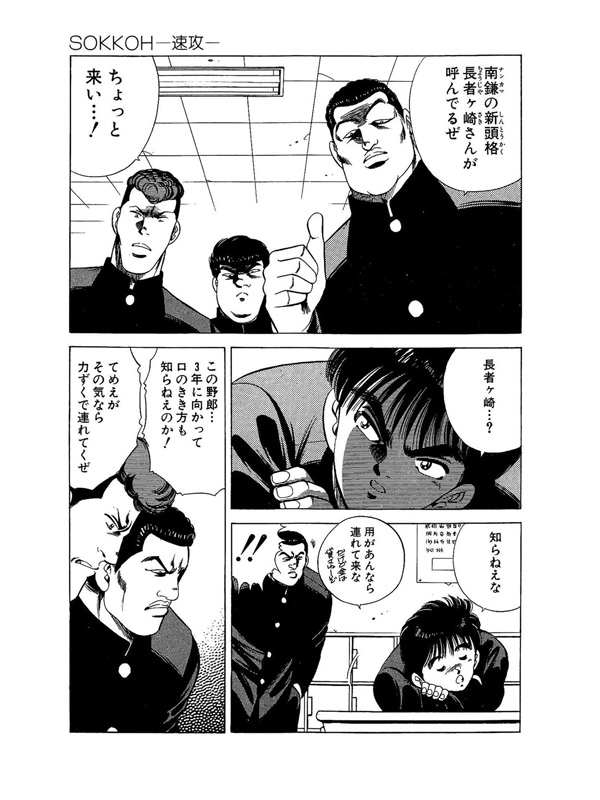 高校一年生になったばかりの飛車攻(ひぐるまこう)は、中学時代は向かうところ敵なしのケンカ王。乗り始めたばかりのバイクを駆って、たったひとりで湘南最大の暴走族・茅ヶ崎梁山泊にケンカをふっかけた!