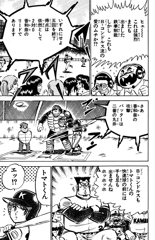 創部以来、敗戦続きの弱小・私立香和奈高校の野球部だったが、夢野苫人(トマト)と林童クルミの入部で一気に流れが変わりはじめている。現在の対戦成績は1勝60敗。再び勝利を目指す野球部の今度の相手は暴走族チームのブラックコンドルス!彼らの度重なるラフプレーに満身創痍のトマトだったが…!? 松田一輝の描く、爆笑青春野球コメディーの決定版「トマトスカッシュ」第2巻!!