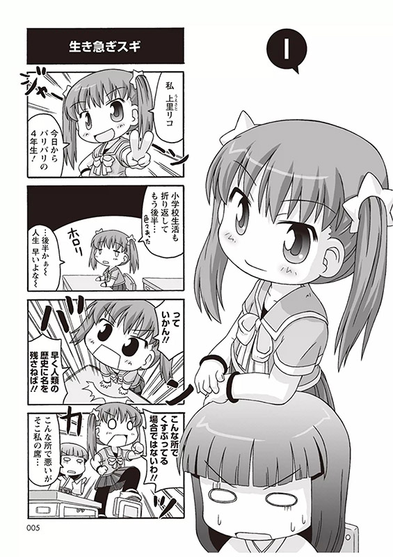 萌え&癒しのなごみ系小学生ギャグ4コマ。ハイテンションな小学4年生・リコと、個性派ぞろいのクラスメイトが、教室に風雲を巻き起こす!? 巫女あり!スク水あり!「もえよん」誌上で話題を呼んだ伝説の作品が待望の復活!!