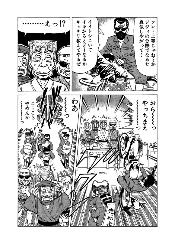 ある日蜂兵衛がひき逃げに遭い入院。そのひき逃げ犯人が獄門会の鬼島という男だと情報が入り平成爺メンが集結!