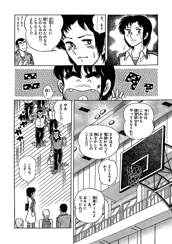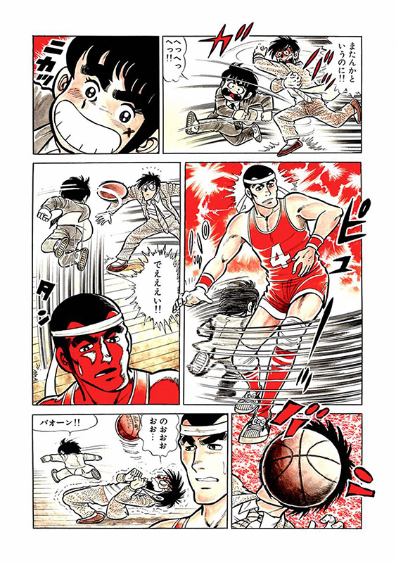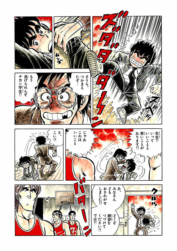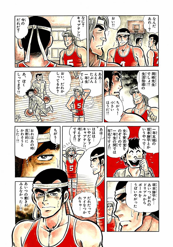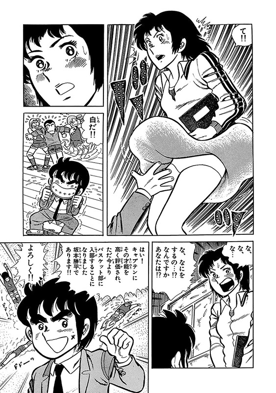 逃げ込んだ体育館でバスケット部が練習しているとこに乱入し、その類まれな運動神経を披露する。