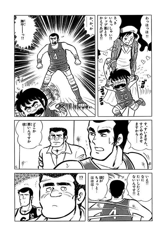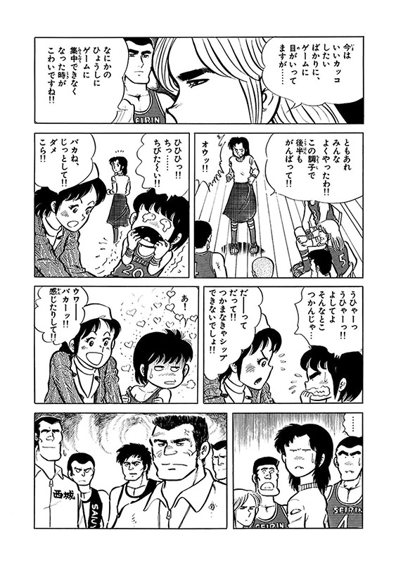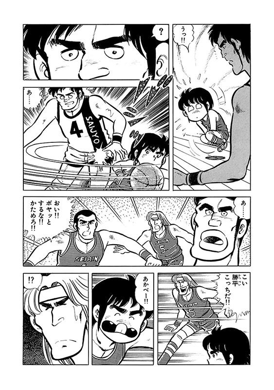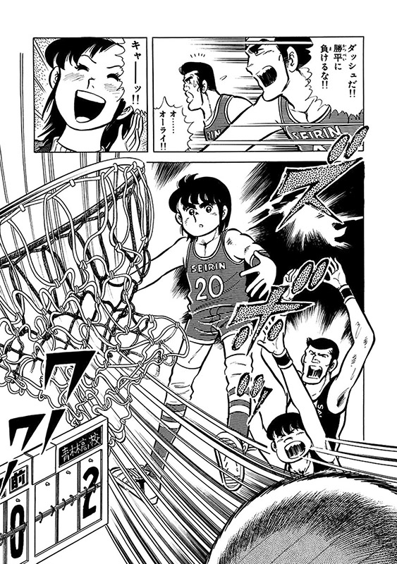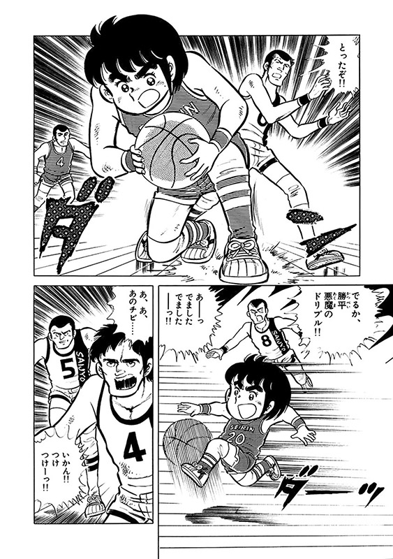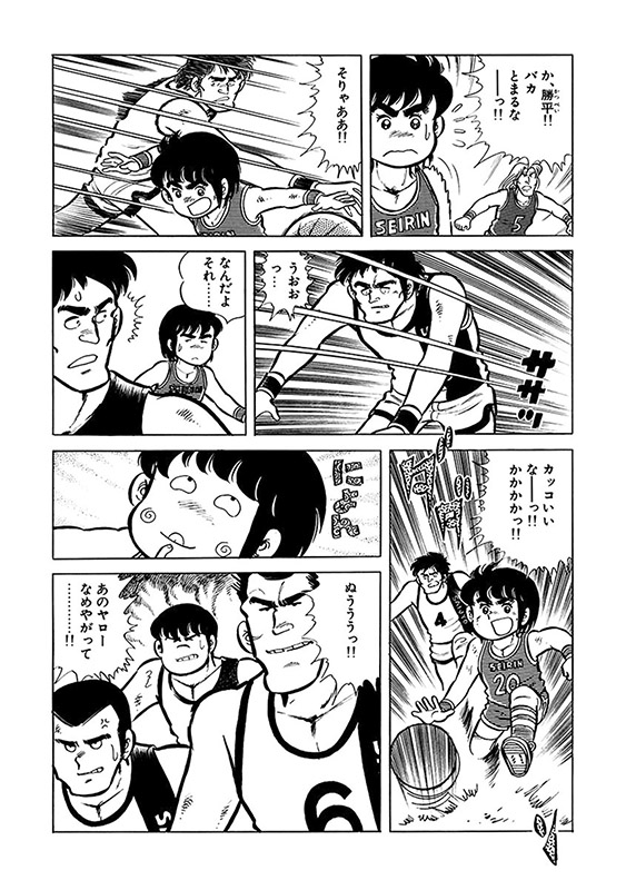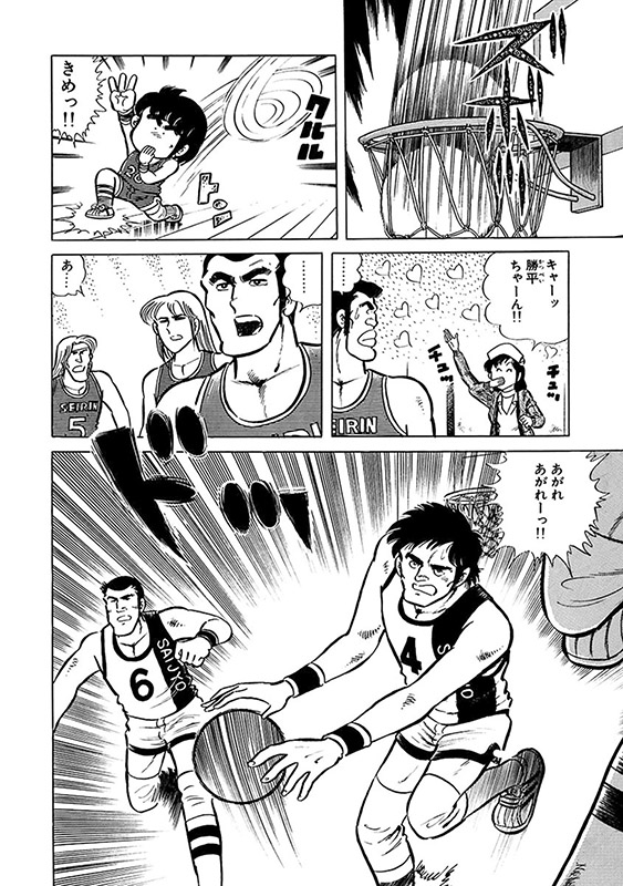 逃げ込んだ体育館でバスケット部が練習しているとこに乱入し、その類まれな運動神経を披露する。