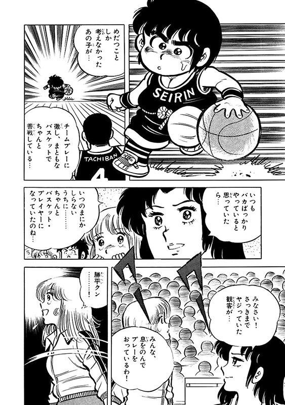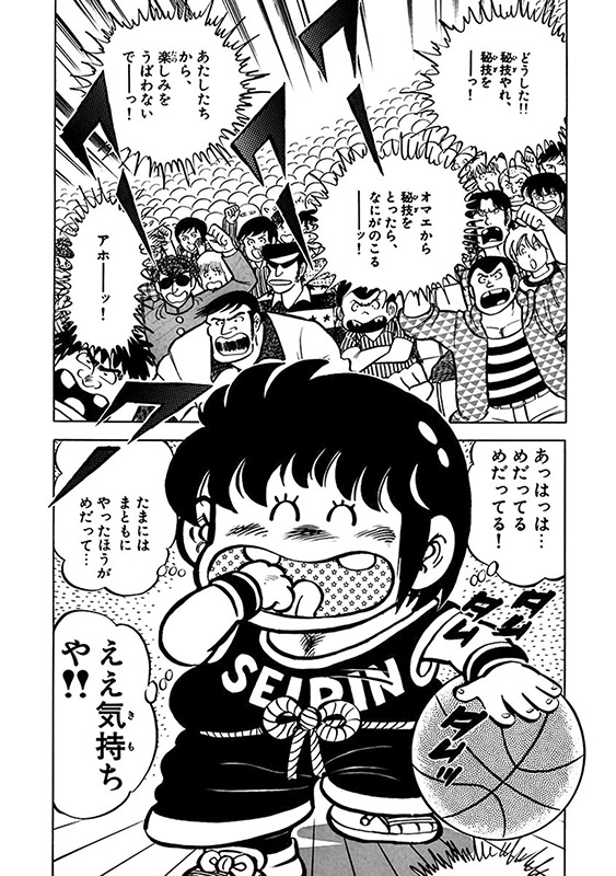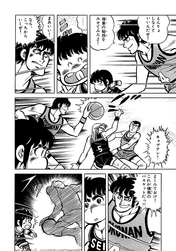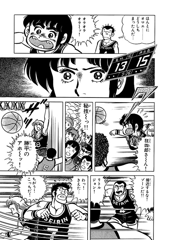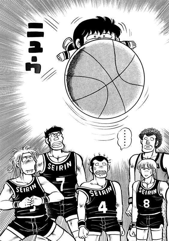 逃げ込んだ体育館でバスケット部が練習しているとこに乱入し、その類まれな運動神経を披露する。