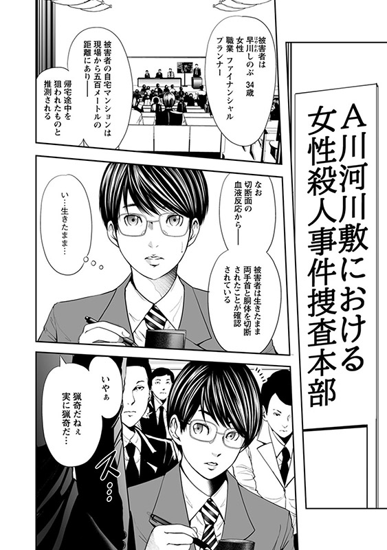 いままで数々の猟奇○人事件を解決してきた実績のある捜査官“ミスター猟奇”こと久留宮幸作も捜査本部に迎え入れられる。すぐに事件の手口が10年前、小部数発行された小説『ヴェクサシオン』に酷似していることが判明。
