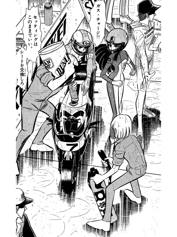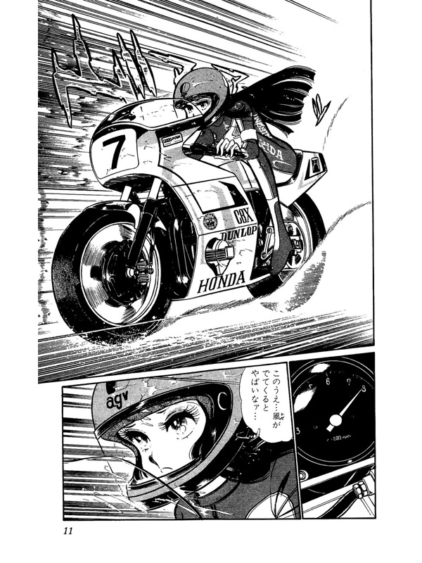 サバンナRX-3のロータリーエンジン12Aの音が背中にはりつきそうになったとき、無意識のうちに右手はスロットルを全開位置にしていた…後輪の滑る音と同時にカワサキZ400FXの心臓も嫌な音を立てて2気筒死んだ…。