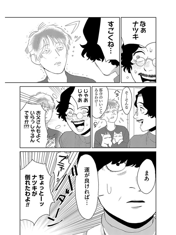 かけ出しのアーティスト・ナツキは山奥の家で猫のフユと二人暮らし。