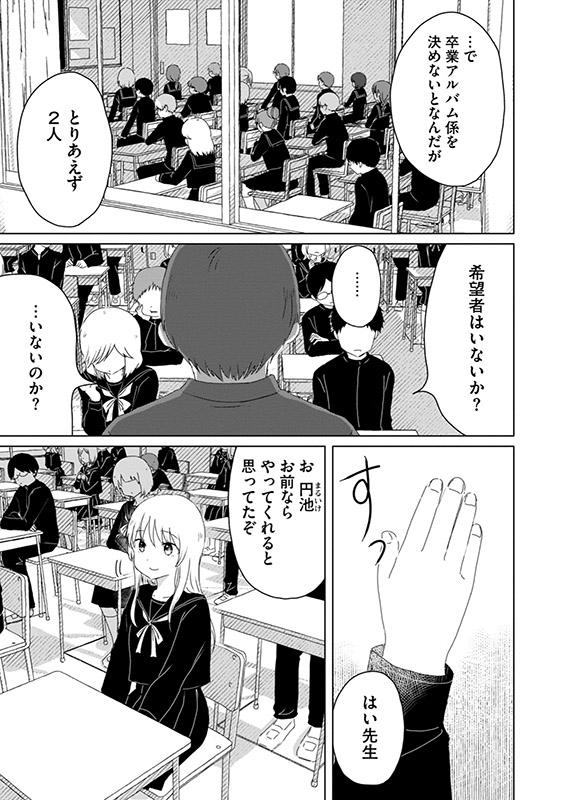 地味な藻山さんと人気者の円池さん。一緒に卒業アルバムを作るうちに二人の距離が近づいて……。