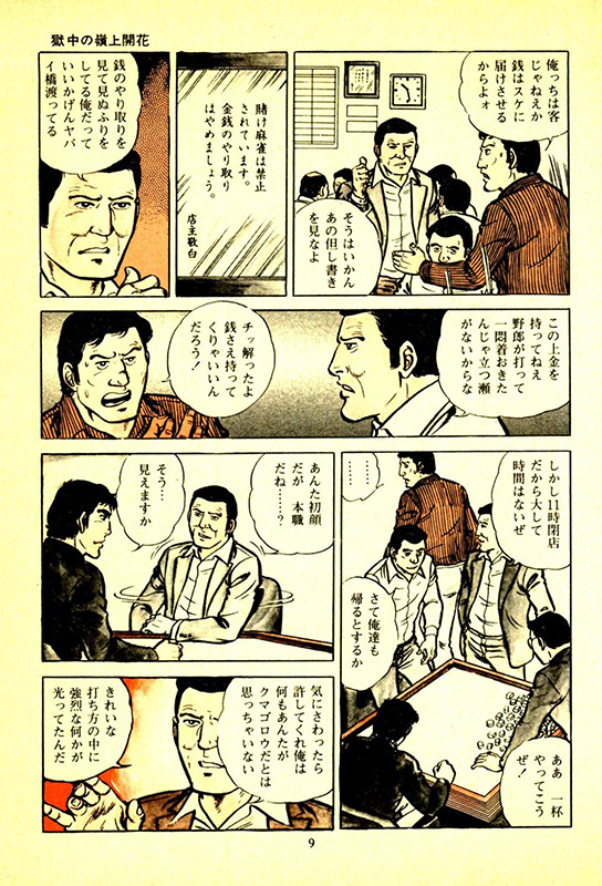 赤城恭介(あかぎ・きょうすけ)……生まれた時から天涯孤独。 幼なじみの洋子が自殺するきっかけを作った男を刺して入った少年刑務所で麻雀を覚え、シャバで少刑の同輩の手引きで、麻雀の腕で暮らしていたが、ある日同輩にハメられ、新宿の街を追われることに。独り、雀ゴロとして生きていく決意をするが……? 本格麻雀ロマンの決定版!