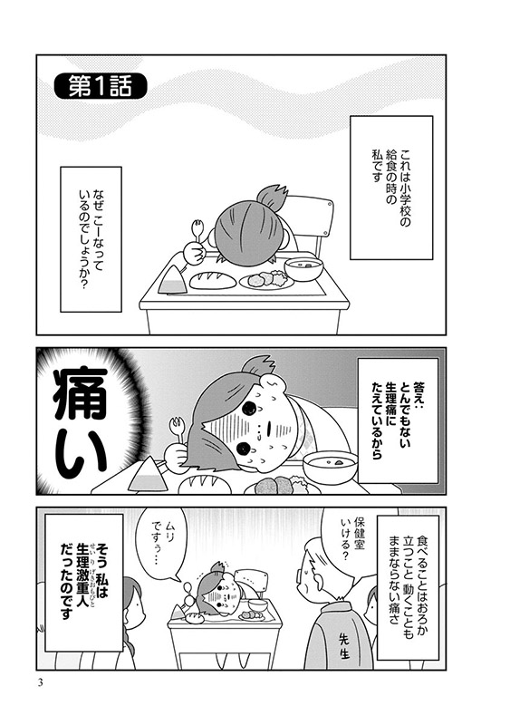 検査しても婦人科系器官には異常がないにもかかわらず、10代の頃から月経が激重で月の3分の1を苦しんできた作者。