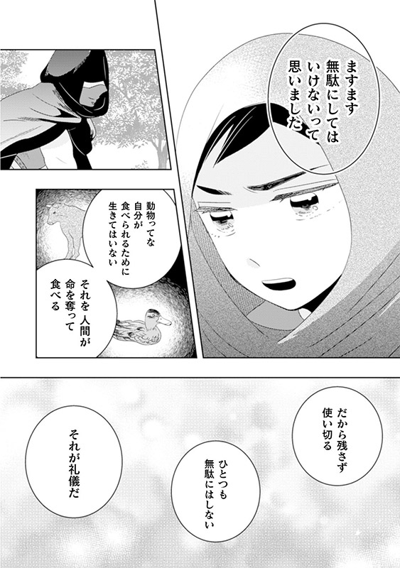 謎の人物にふるまわれた食事により、少しずつ活力が湧いてくる。
