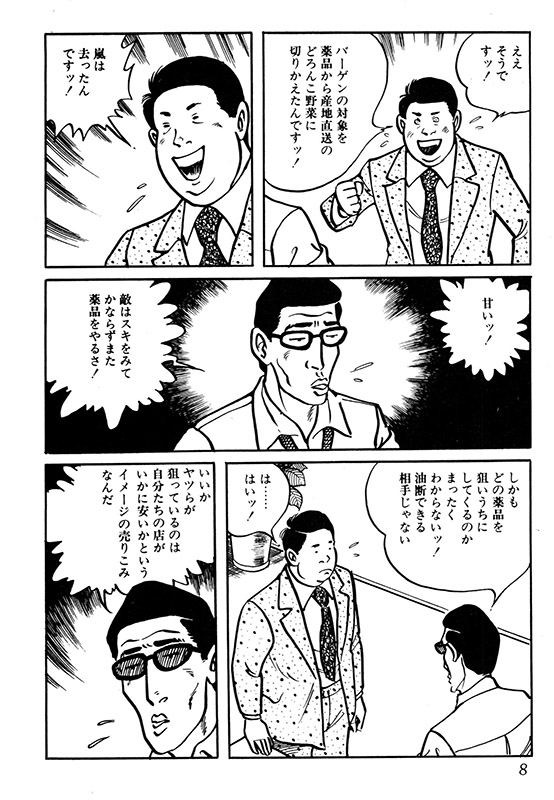 「買ってやってもいいぜ、ただしお前の身体ごとだ」。 太平洋戦争からひとり生還した猪狩功(いかりいさお)は殺伐とした焼け野原で生きるため、2人の孤児と闇市で商品を販売中、怪しい男・衣笠と出会う。大金と引き換えに、米軍の物資を横流しするという死と隣合わせの仕事をするが…。 今、この東京に一番大事なものは食料と物資だ。その確保のため正式な流通業を始める。先がどうなるかわからない。この混乱の時代をどう生きるか。 何もないところから巨大な店舗を各地に切り開いていく創業社長物語。