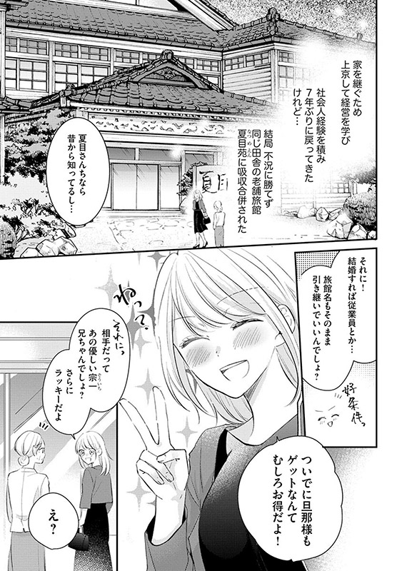 そんな時、幼なじみ・龍二の実家で老舗旅館「夏目苑」にかなりの好条件で旅館を買収されることに。