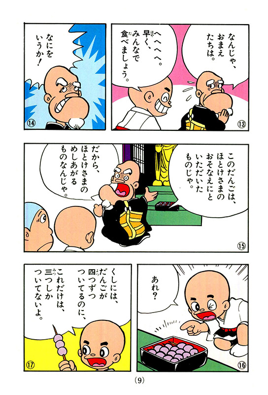 アニメでもおなじみのとんち小僧・一休さんとお寺の仲間たちの活躍を愉快に描いたマンガのほか、一休さんから出題されるなぞなぞに挑む「とんち勝負」もある盛りだくさんな1冊。