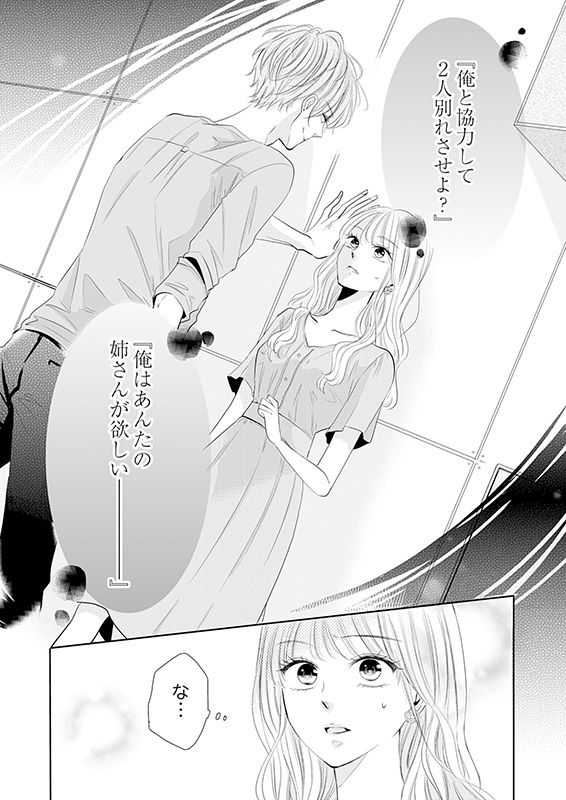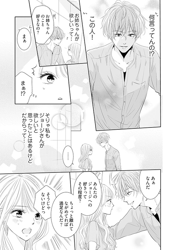 姉の婚約者を好きになって7年。私は嘘をついて生きている。それはこれまでもこれからもずっと変わらないはずだった。英知と会うまでは―…。英知に私の嘘がバレた日、彼は私に言った。「俺はあんたの姉さんが欲しい」彼は私の姉を、私は姉の婚約者を求めるべく、手を組んだのだが…。本当に姉のことが好きなのか疑問になるくらい、英知は私に迫ってきて!? 男に慣れるためのハグ…それにキ、キスまで…!? 一体どういうことなの――!? 【恋するソワレ】