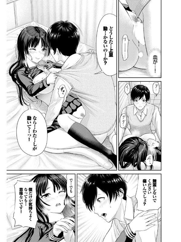 主人公・上里は密かに生徒会長に想いを寄せていた。生徒会の激務をこなす会長を手伝っていると過労がたたってしまい、倒れてしまった上里。保健室で寝ていると介抱してくれた生徒会長にキスをされて…!? お互いの気持ちを知った二人は、そのまま保健室で身体を重ね愛を確かめ合うように初体験へ…。