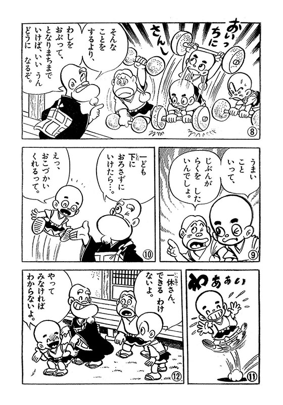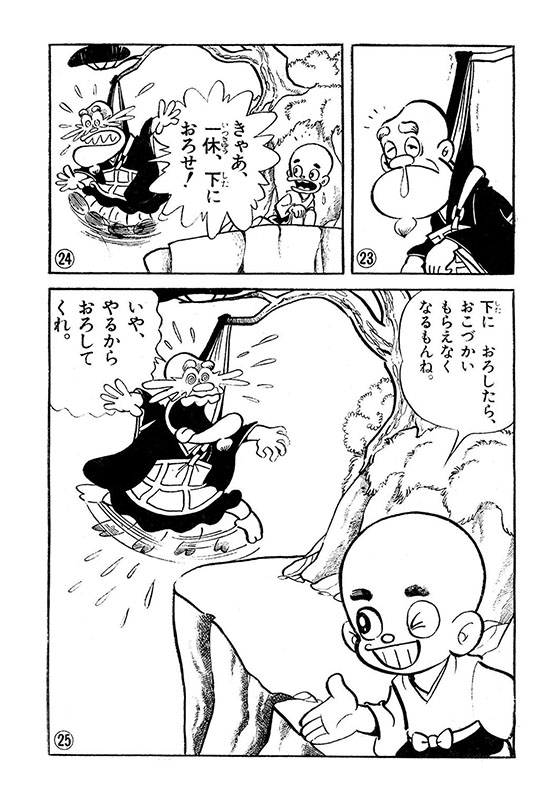 この他、絶対に勝てるわけない大人との力比べ、足を動かさずに歩け、お箸で水をつまめ等、次から次へ押し寄せる無理難題をとんちの名人・一休さんが見事に、時にはちょっと強引に解決してゆく痛快コメディ!